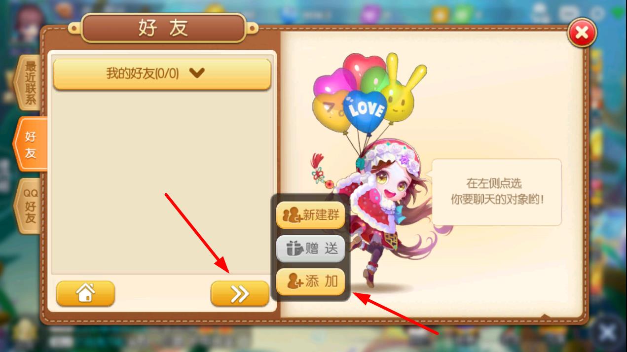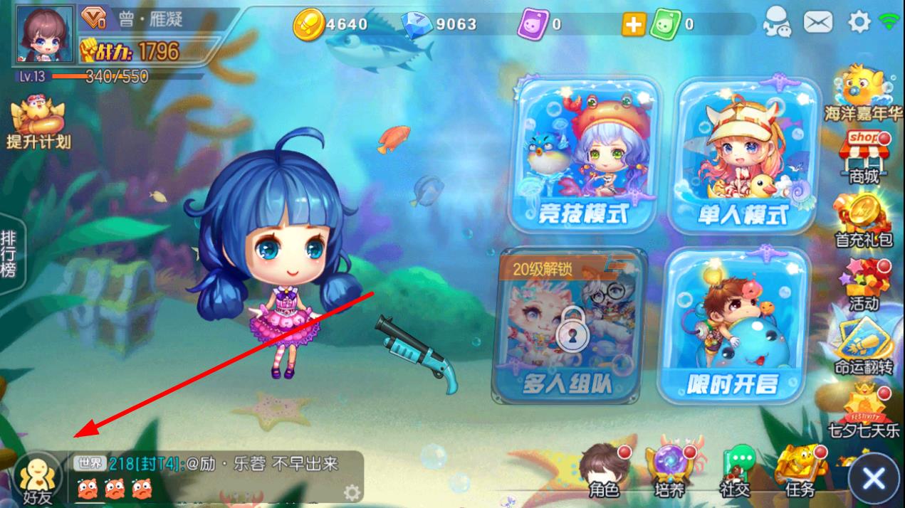 1、打开弹弹堂手游进入游戏主界面,点击左下角的好友图标,进入好友相关界面。