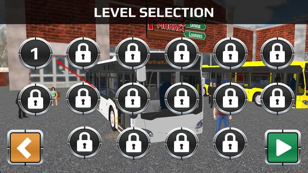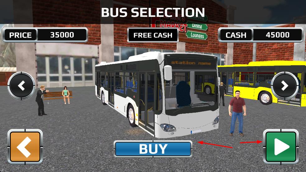 2、进入BUSSELECTION,消耗现金CASH点击BUY购买巴士,再点绿色箭头开始游戏。