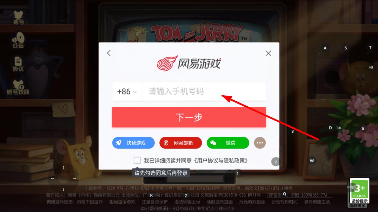 3、进入新的登录页面后,可以选择输入新的手机号码,通过验证码登录,也能点击下方的快速游、网易邮箱、微信等其他登录方式图标,完成账号切换登录。