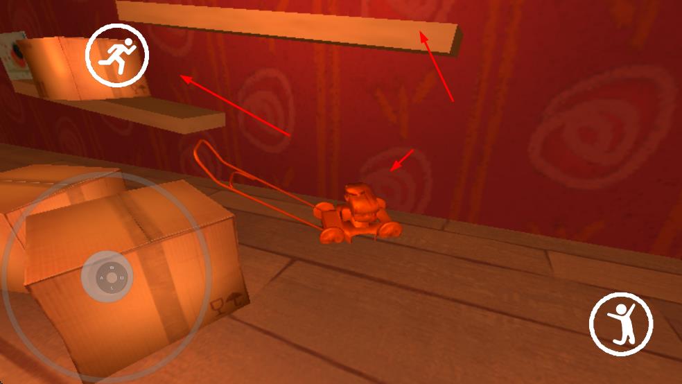 2、靠近箱子、玩具等物品,按右下互动键调查,收集线索。