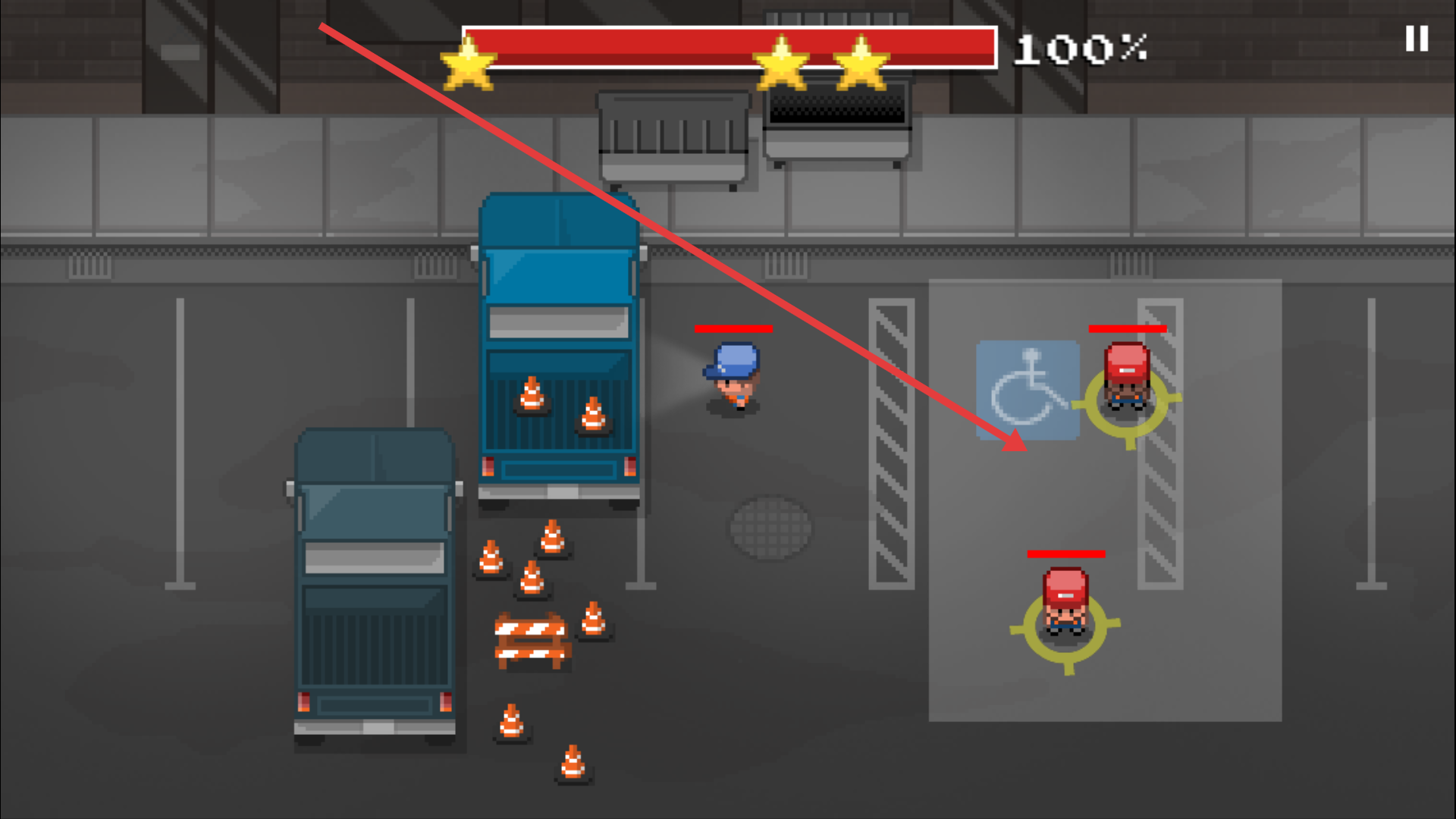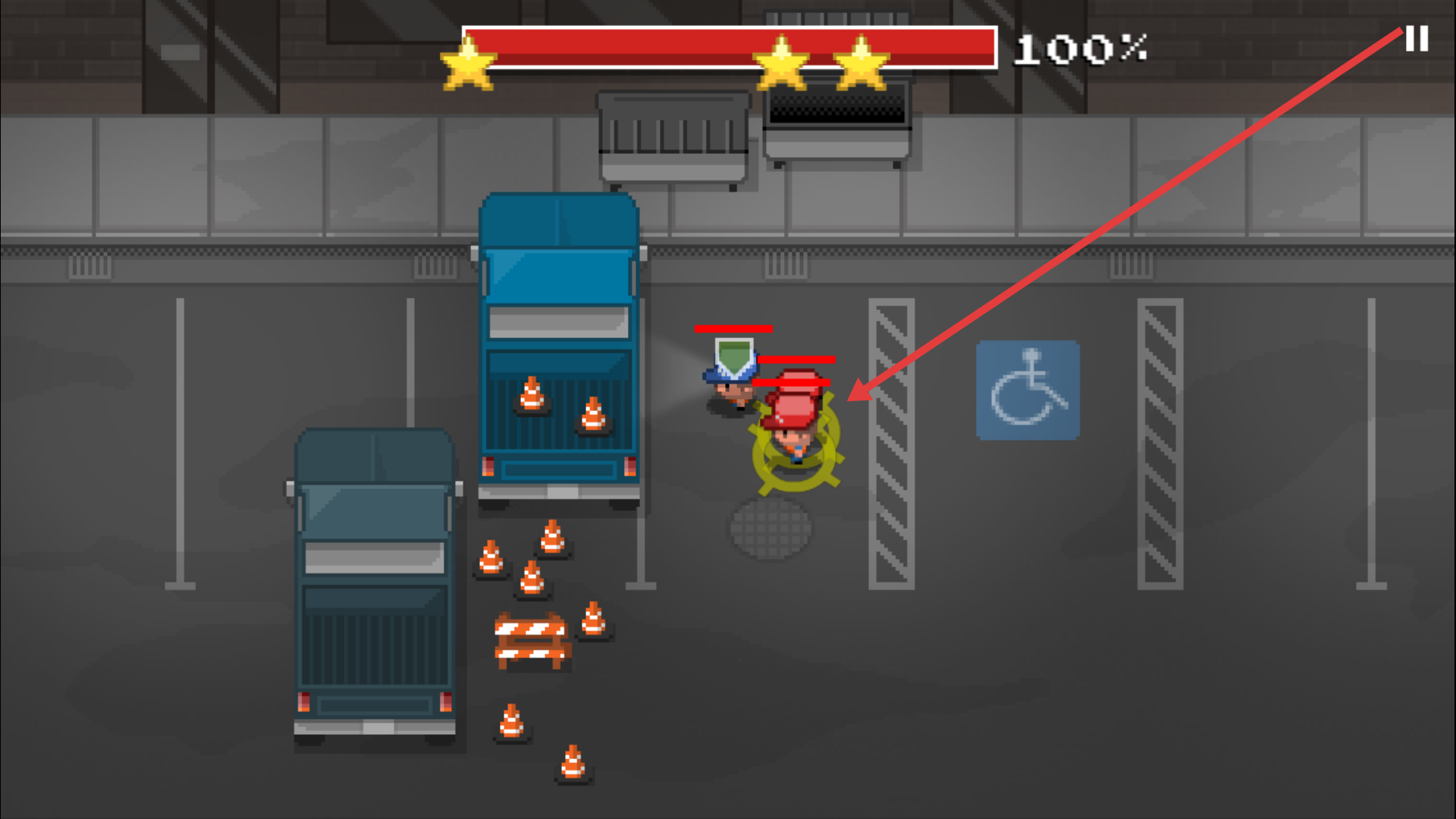 1、拖拽鼠标来选中需要操控的红帽角色,可以根据战术全选或单选,移动至停车场红色敌人处。
