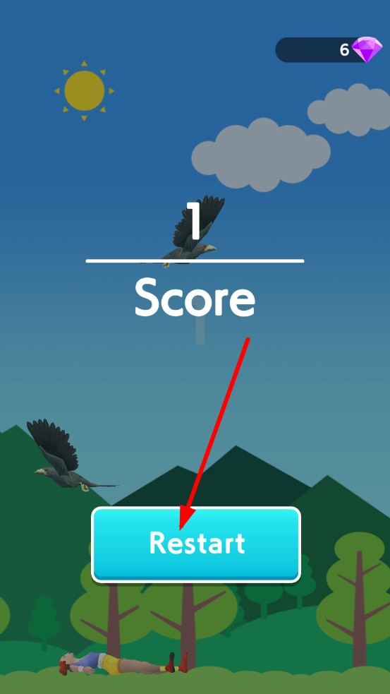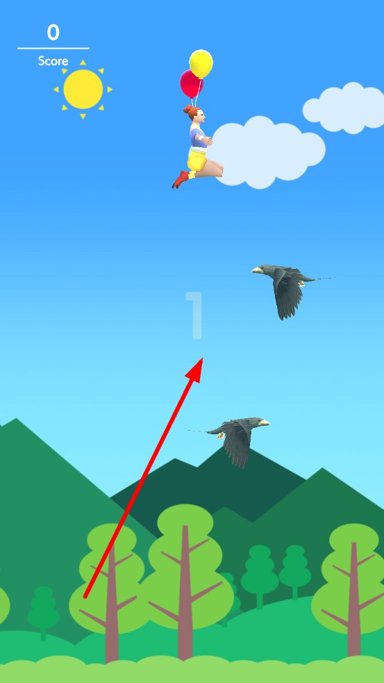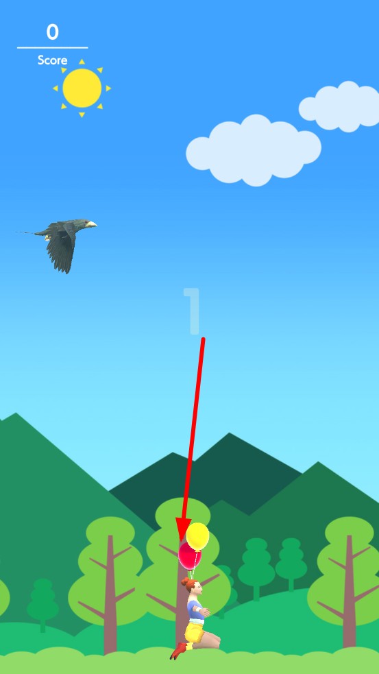 2、 保护角色头上的气球,两个气球代表有两条命,避免被老鹰碰撞,若气球都破裂了,则游戏结束。