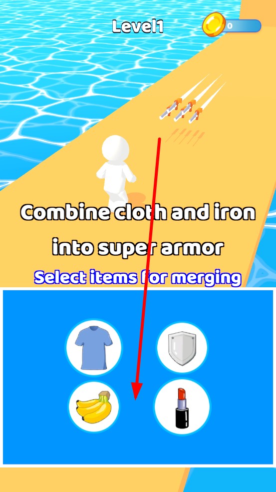 2、障碍动态适配:合成结果影响后续障碍,若合成拳套,前路会出现需破甲的铁门,若合成护甲,箭雨密度会提升,倒逼玩家持续优化合成方向。