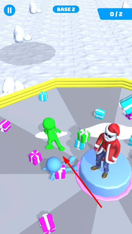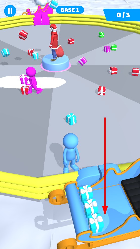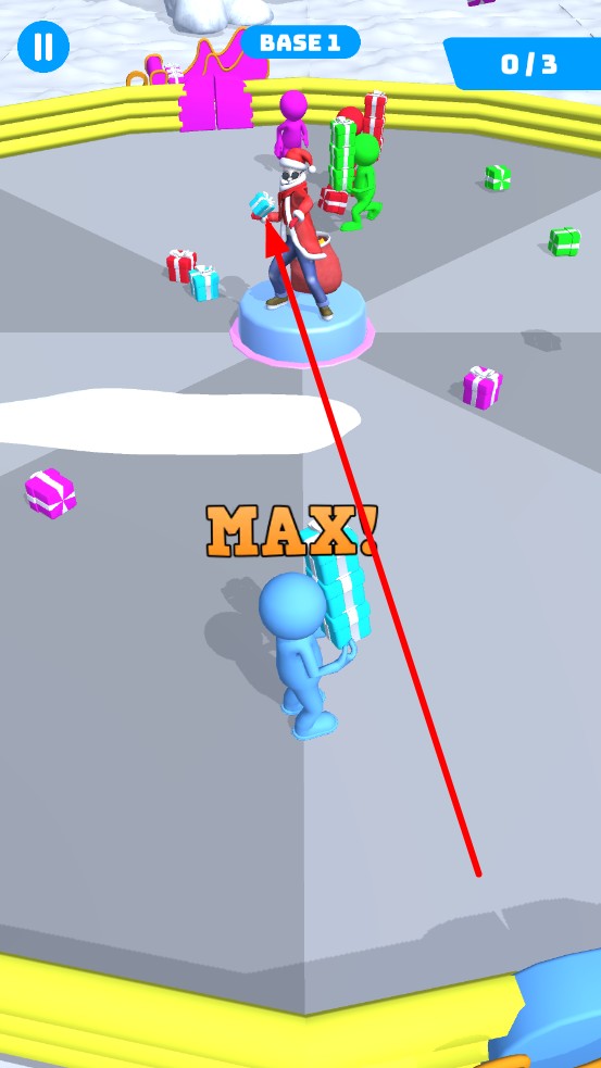 2、扛着礼物向己方基座前进,途中留意对手干扰,避免礼物掉落,收集够六个后,即可进入下一轮。