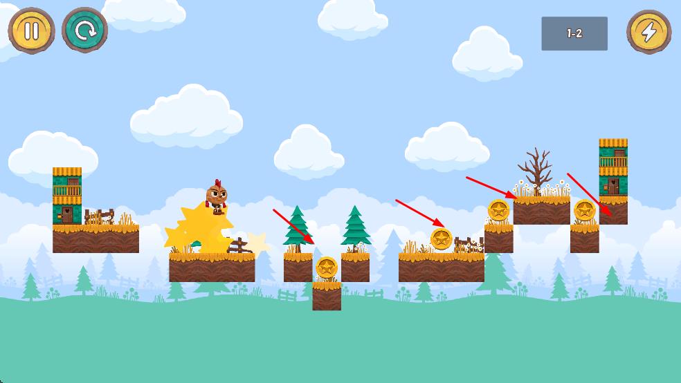 1、操控角色在田园场景移动,通过左右移动、跳跃跨越障碍,沿途收集金币,推进闯关进程。