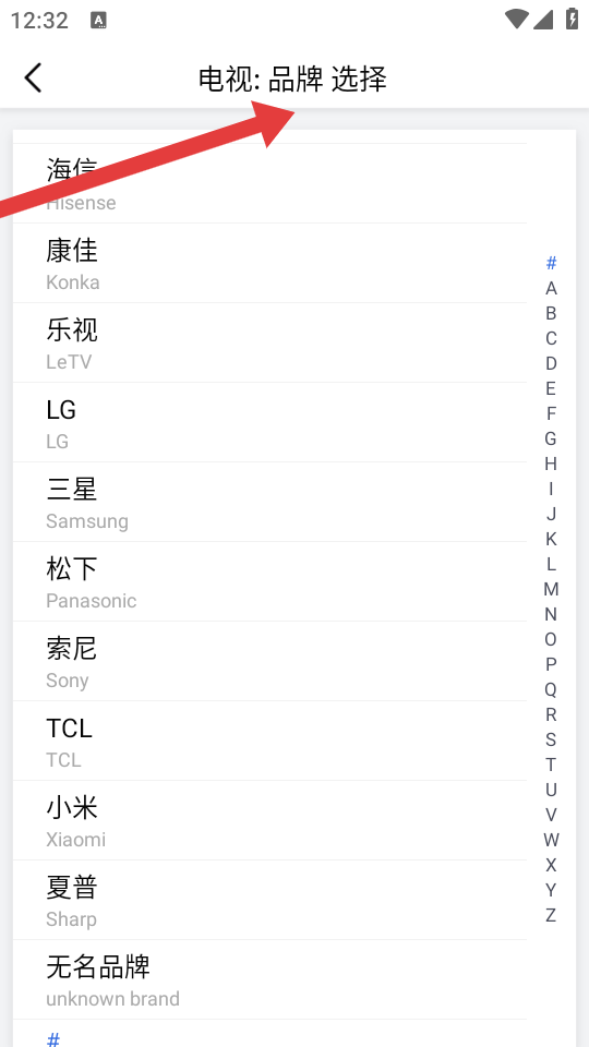 3、在电视品牌选择的页面,找到并点击自家电视对应的品牌如海信、小米、索尼等,按提示完成遥控器配对操作。
