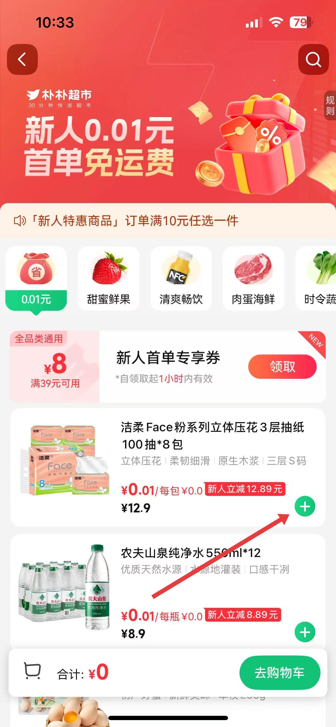1、打开朴朴超市app,找到心仪商品,点击商品右侧加号,将其加入购物车。