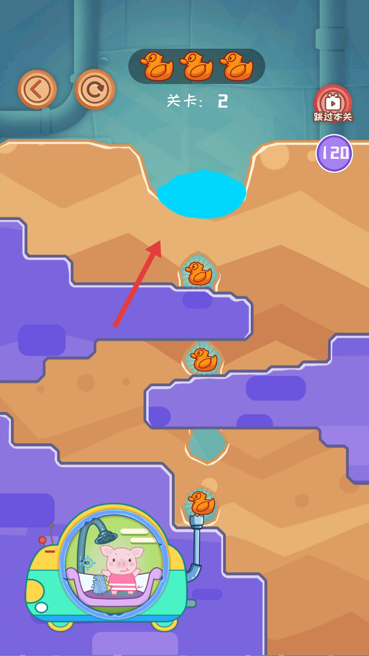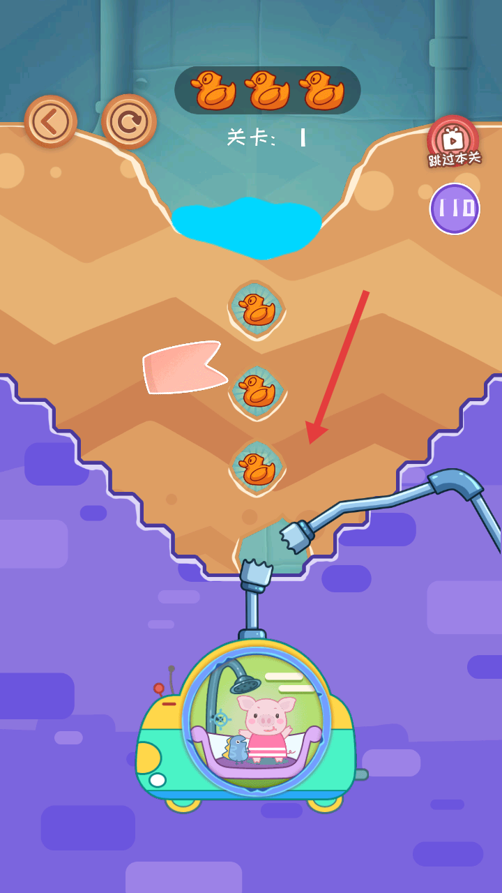 1、基础画线技巧:优先观察水流出口与小猪的直线距离,避开明显障碍绘制最短路线,若水流中途停滞,及时调整路线坡度,确保水流顺畅。