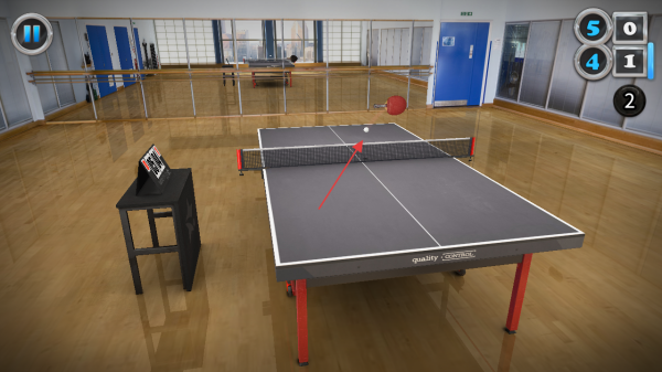3、紧盯球过网后的动向,按红箭头指示方向快速滑动屏幕,控制球拍精准回球不断重复练习增强手感和反应速度。
