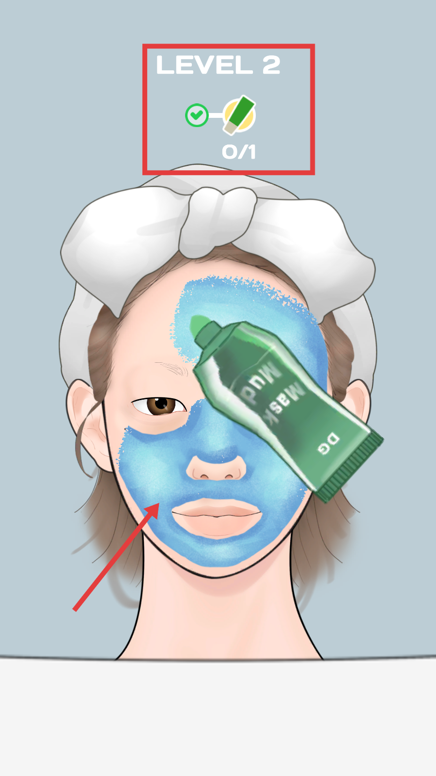2、在【LEVEL-2】后续步骤,将【MASK-MUD】泥膜均匀涂抹面部,完成【0/1】面膜任务,深化护肤流程。