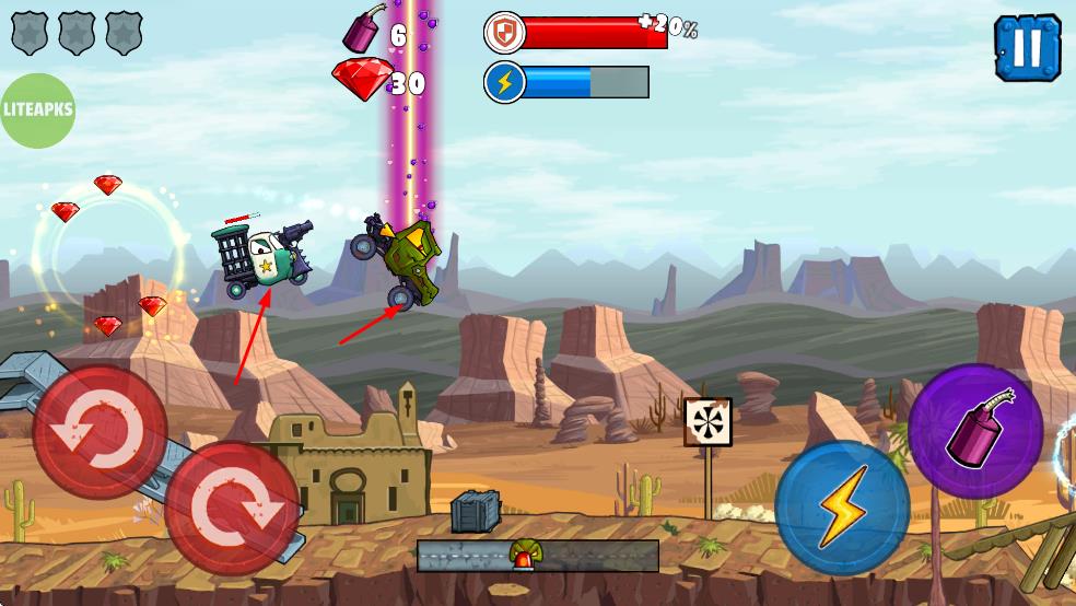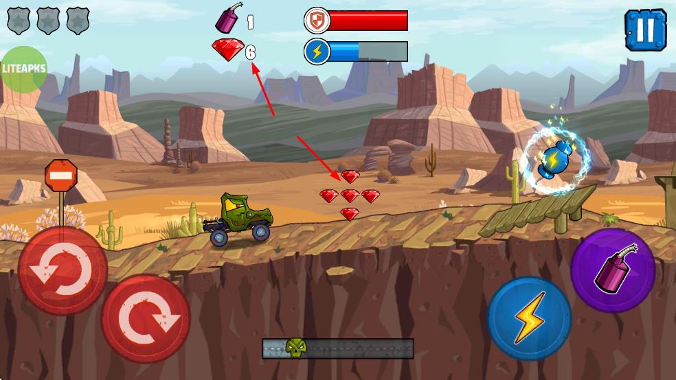 2、行驶中收集红色钻石,积累资源,提升界面上方钻石数量,助力战车强化。