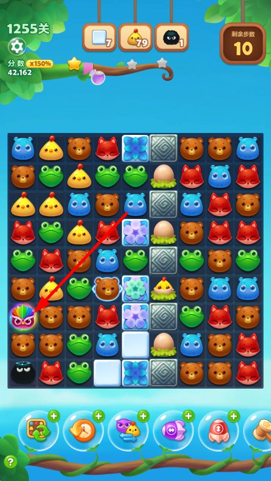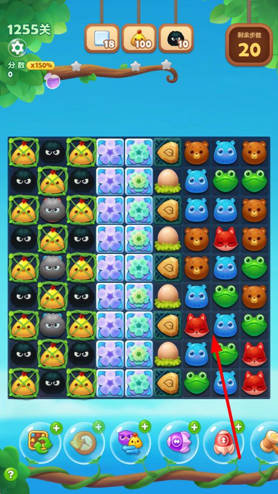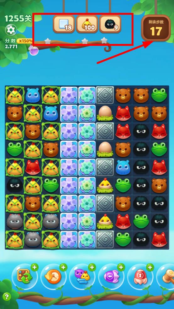2、留意屏幕上方的任务目标,比如消除指定数量的某种动物、打碎冰块、拯救小鸡等,并在剩余步数限制内完成目标。