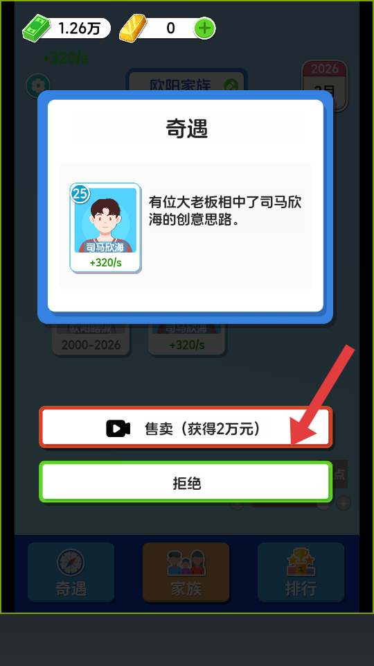 1、创意售卖的奇遇,大老板相中创意时选售卖解锁2万现金奖励,选拒绝保留,可能解锁更大收益事件。