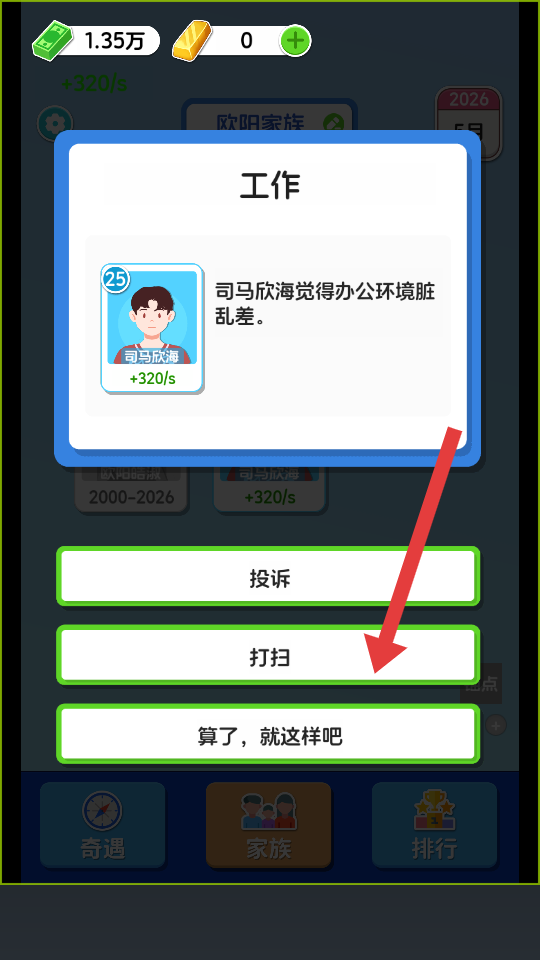 2、办公环境事件,面对环境问题,选投诉解锁职场冲突剧情;选打扫团队好感加成;选算了维持现状。