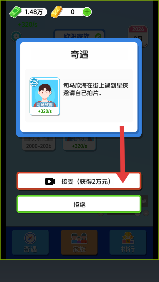 3、星探邀请奇遇街上遇到星探时,接受解锁2万现金与演艺支线;选拒绝专注本职,解锁职场晋升事件。