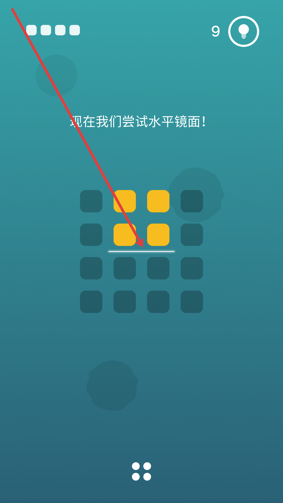 2、水平镜像完成后,顶部进度白点使用完成,达成条件即可解锁后续挑战。