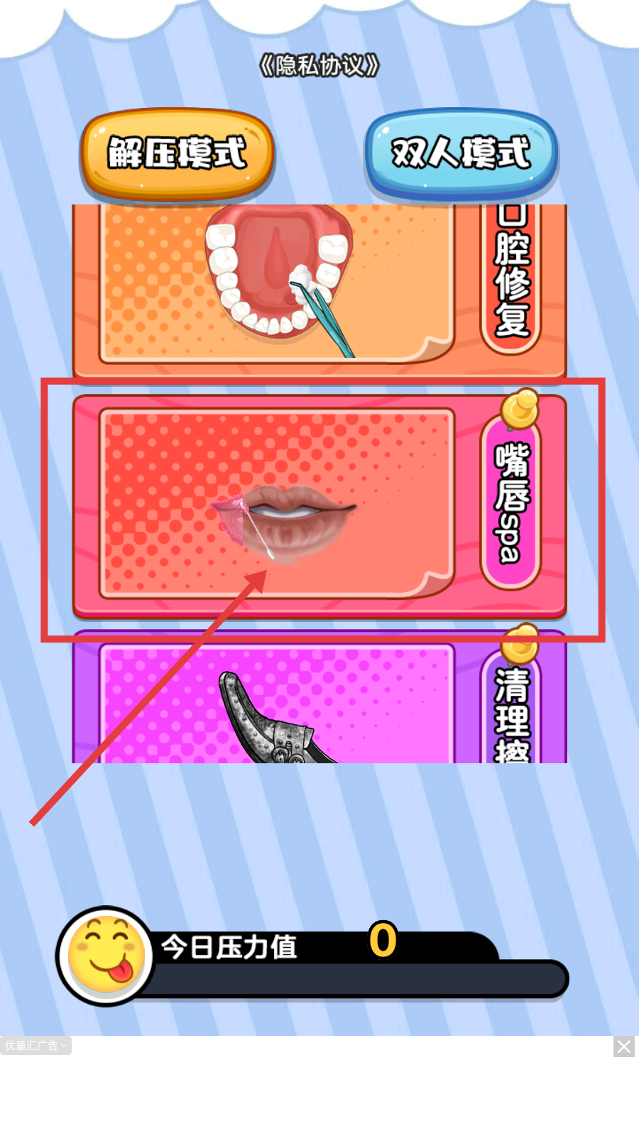1、进入【解压模式】,选择【嘴唇spa】任务,开启唇部护理的解压流程。