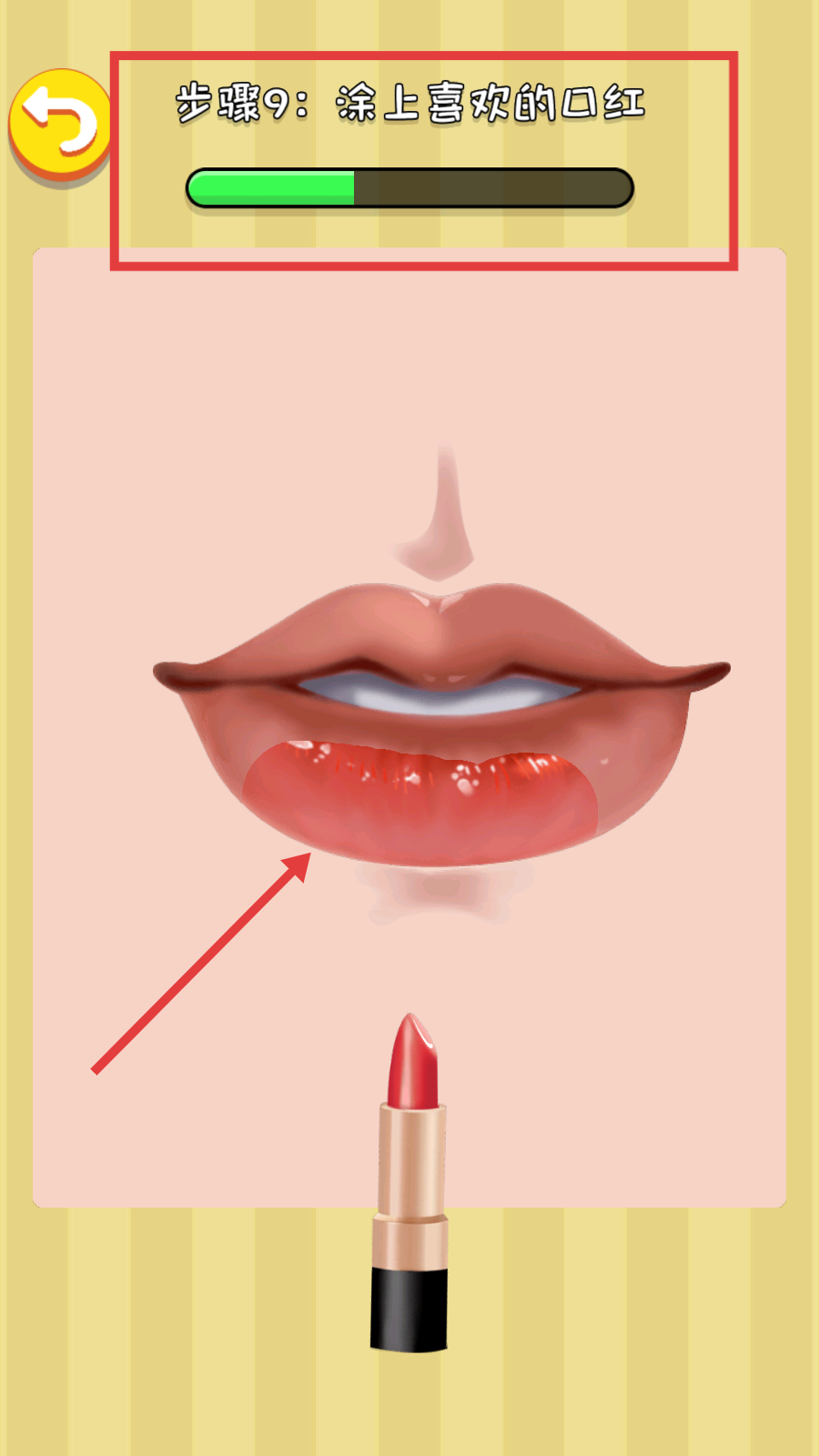 3、完成护理后,在【步骤9-涂上喜欢的口红】,为嘴唇上色,结束嘴唇SPA任务。
