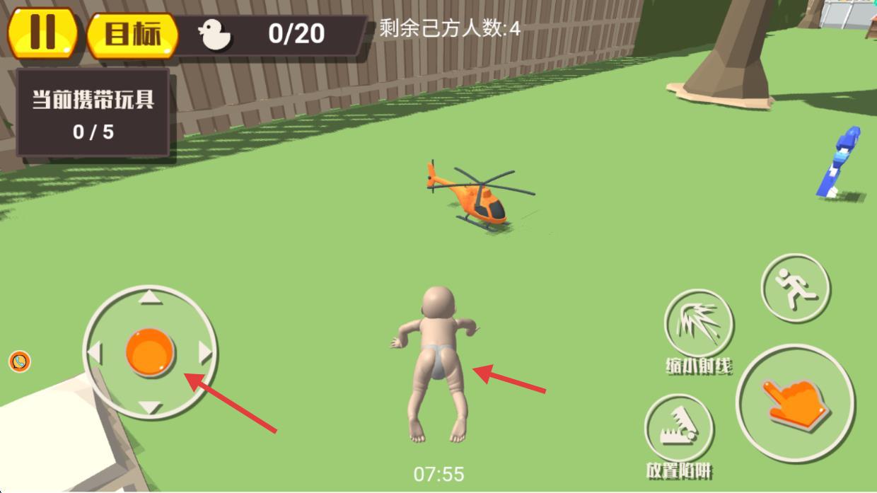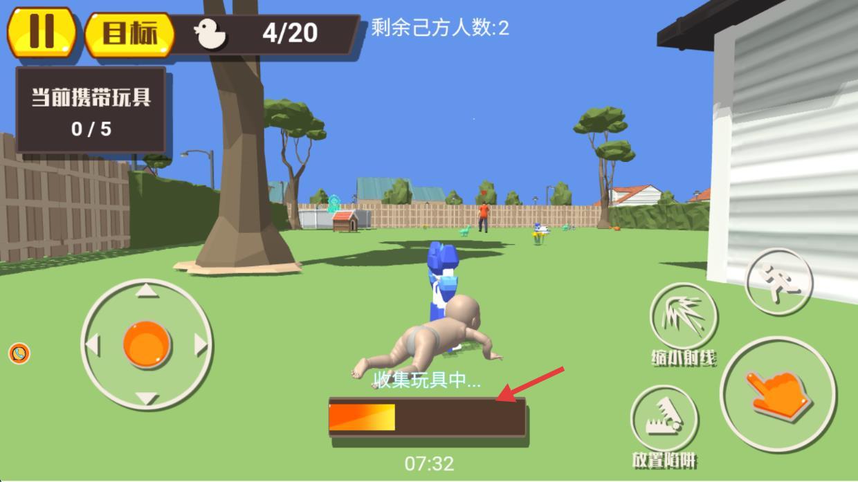 2、对准玩具点击【手势图标】,借助道具助力,在【剩余己方人数-2】时保障收集安全。