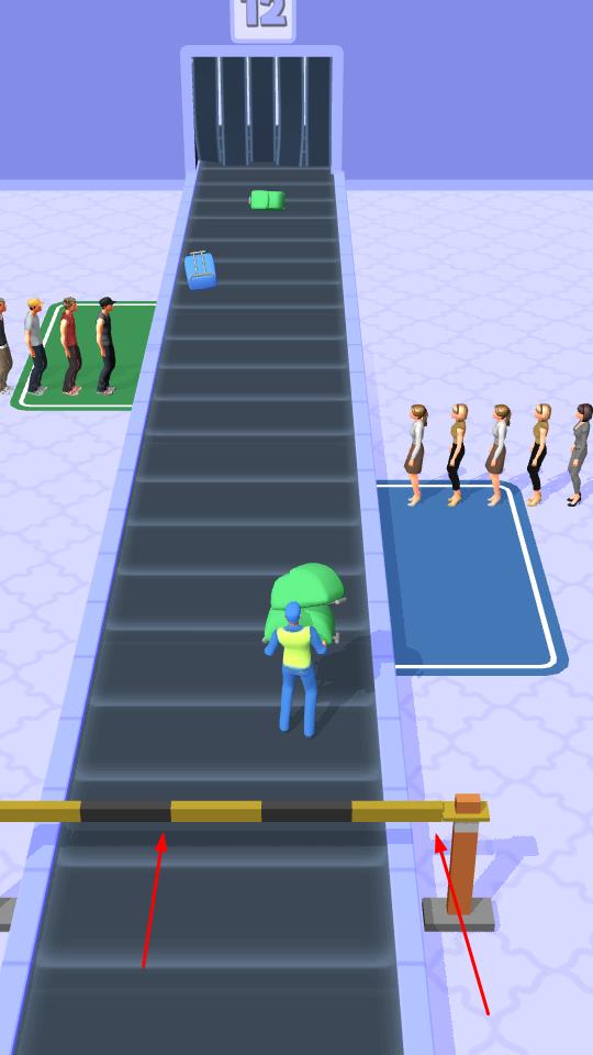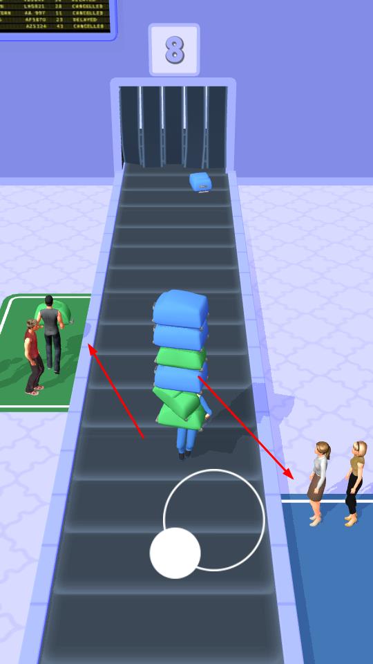 1、摇杆操控工人,拾取传送带上绿、蓝色行李。