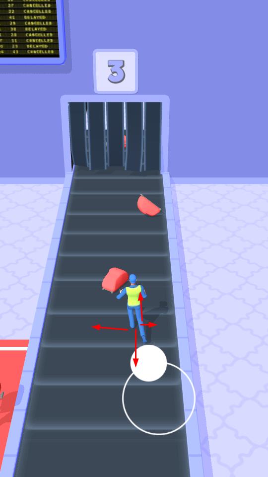 1、用虚拟摇杆控制工人,在传送带上拾取行李。