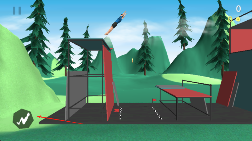 2、点击屏幕左下角带有曲线箭头的按钮,控制角色做出跳跃动作,让角色向金币方向跳跃。