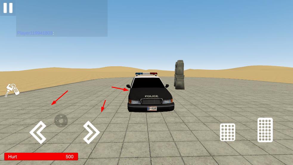 2、生成警车,通过虚拟按键方向、钥匙驾驶载具。