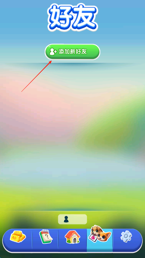 1、打开游戏,进入主界面,按红箭头方向点击底部带有猫狗头像的好友图标。