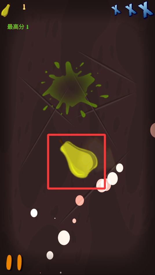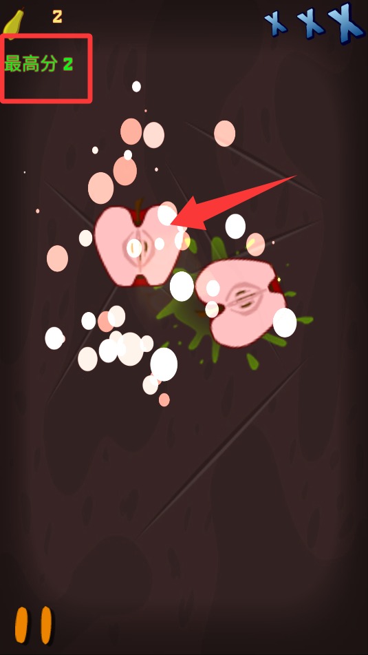 3、通过手指在屏幕上快速滑动形成切割轨迹,准确划过抛起的水果目标完成分割动作。