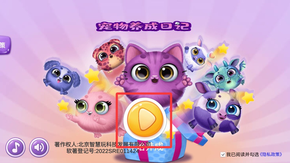 1、启动游戏后首先点击主界面"开始养育"按钮,进入宠物小屋场景并领取初始陪伴动物。