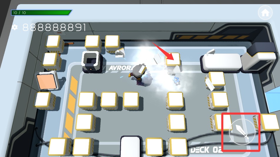 4、锁定目标后点击激光发射键摧毁箱体,收集散落的飞船组装零件以升级推进器与防护系统。