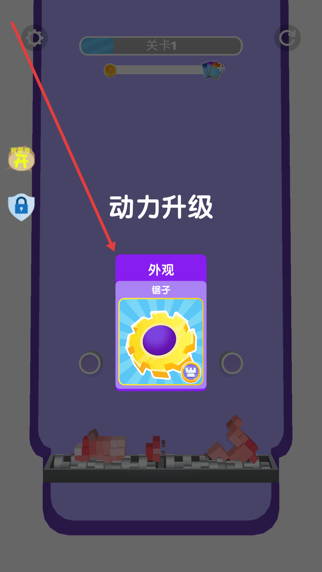 3、金币收集后,获得关卡奖励,得到新的锯子道具,完成动力升级解锁新能力。
