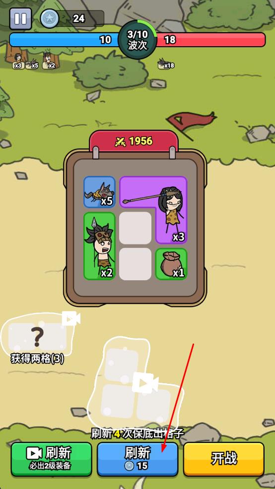 3、刷新达次数保底扩展背包格子,容纳更多兵种,优化阵容。