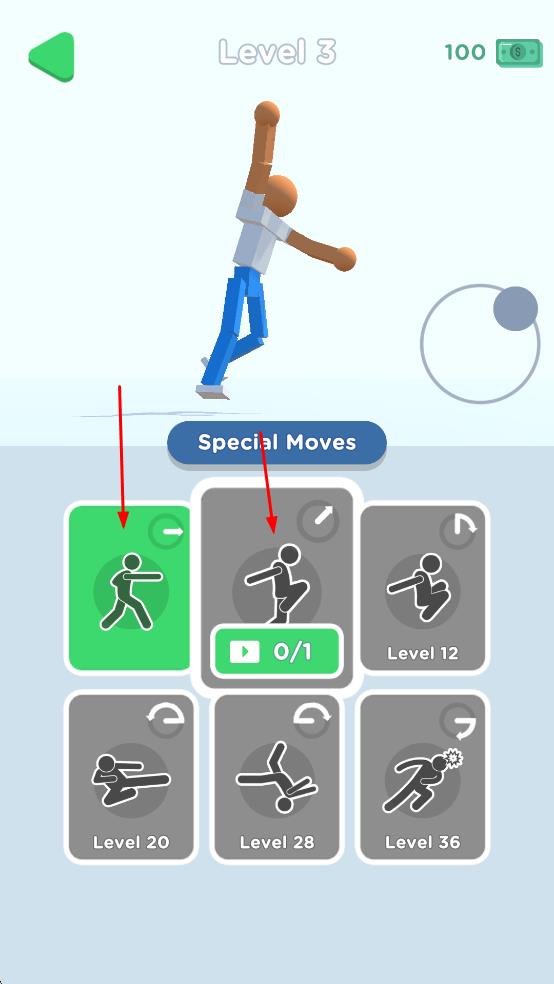 2、积累金币与等级,解锁Special Moves如Level12、20技能,提升战力。