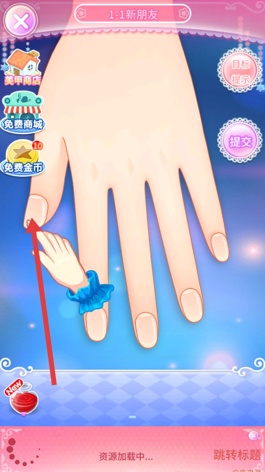 1、进入游戏后选择想要装扮的角色手部模型,从基础甲形库中挑选喜欢的指甲形状,确定美甲设计的初始框架。