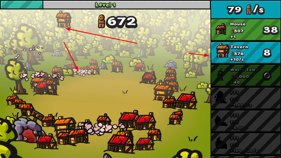 2、建筑生成后,人口持续增长,升级建筑可强化效率。