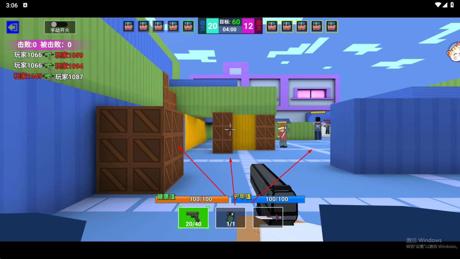 2、分阵营对抗,利用场景掩体,切换武器手枪、手雷、刀,达成60次击败目标。