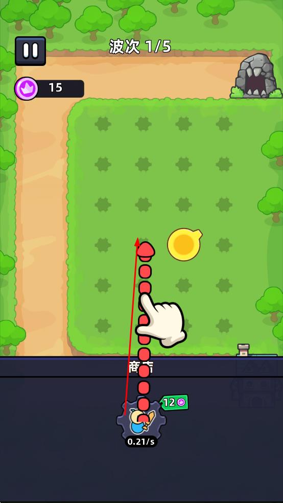 1、消耗紫色货币,拖动召唤士兵到战场,部署防线。