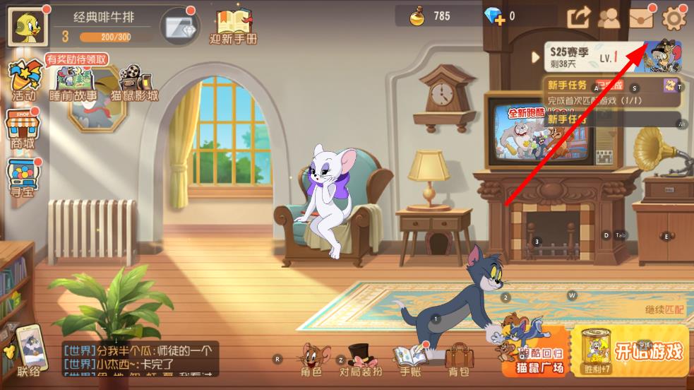 1、打开猫和老鼠游戏主界面,点击右上角齿轮图标,进入设置界面。