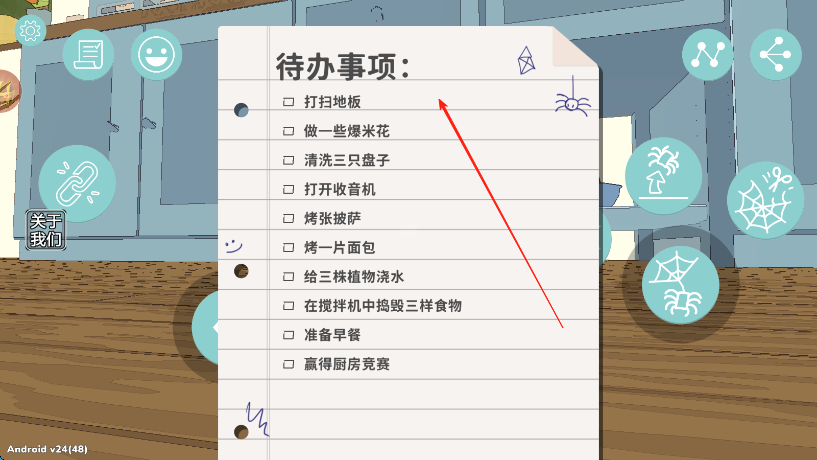 3、移动角色探索房间、寻找如书本等物品或与任务相关目标、完成待办事项推进游戏。