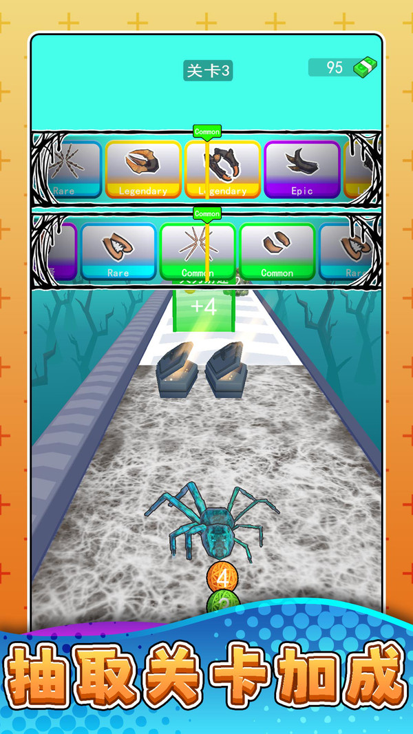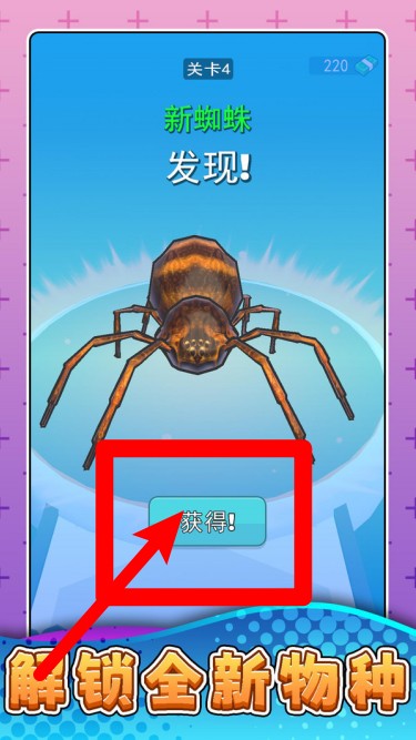 3.新种解锁:通关后出现新蜘蛛发现提示,点击获得即可加入图鉴与可选形态,后续可继续进化带来更高速度与耐久,扩展成长路线。