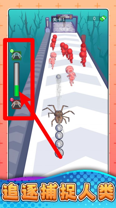 1.角色进化:比比谁更快中蜘蛛可通过收集发光飞虫不断成长,从外观到能力全面提升,每一次蜕变都让玩家体验到明显变化和成长成就感。