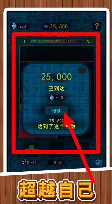 1.成绩达成:结算面板展示达到分数与钻石奖励,进度条与星级一目了然,点击继续即可开始下一关,持续冲击更高纪录。