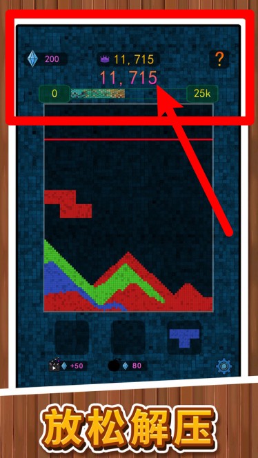 2.实时分数:顶部显示当前分数与目标区间,进度条同步推进,便于掌握节奏与状态,规划连消路线稳步提升总体成绩。
