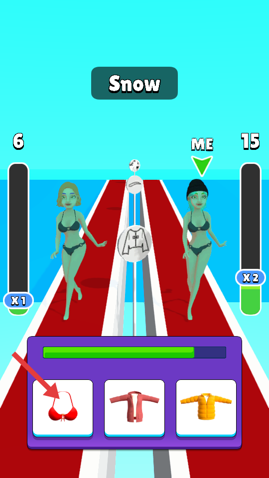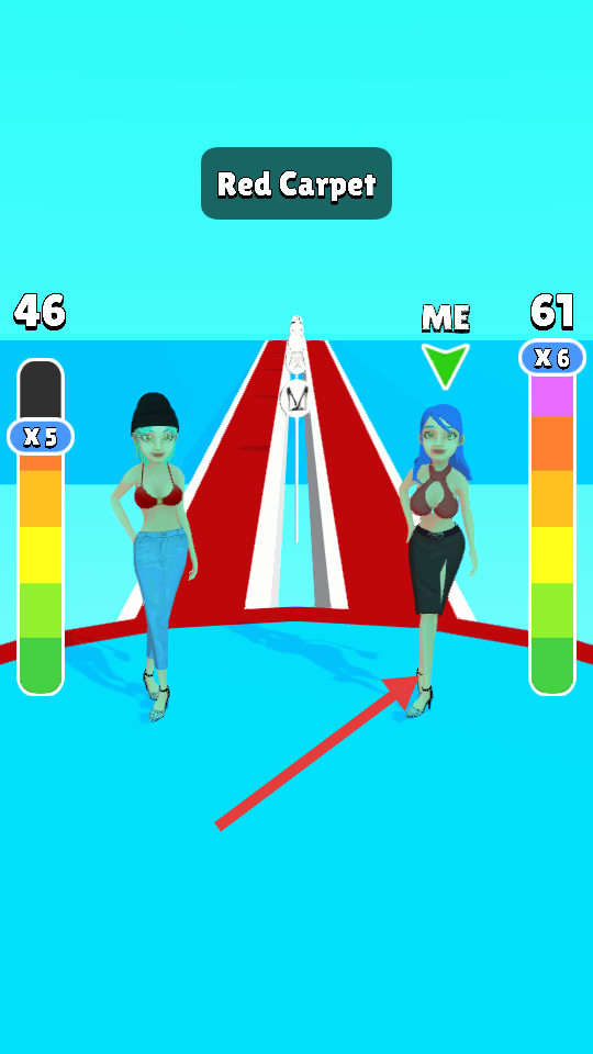 2、在跑酷过程中,留意赛道上刷新的时装道具,如连衣裙、高跟鞋、首饰等,控制角色触碰收集,为角色实时搭配以提升时尚分数。