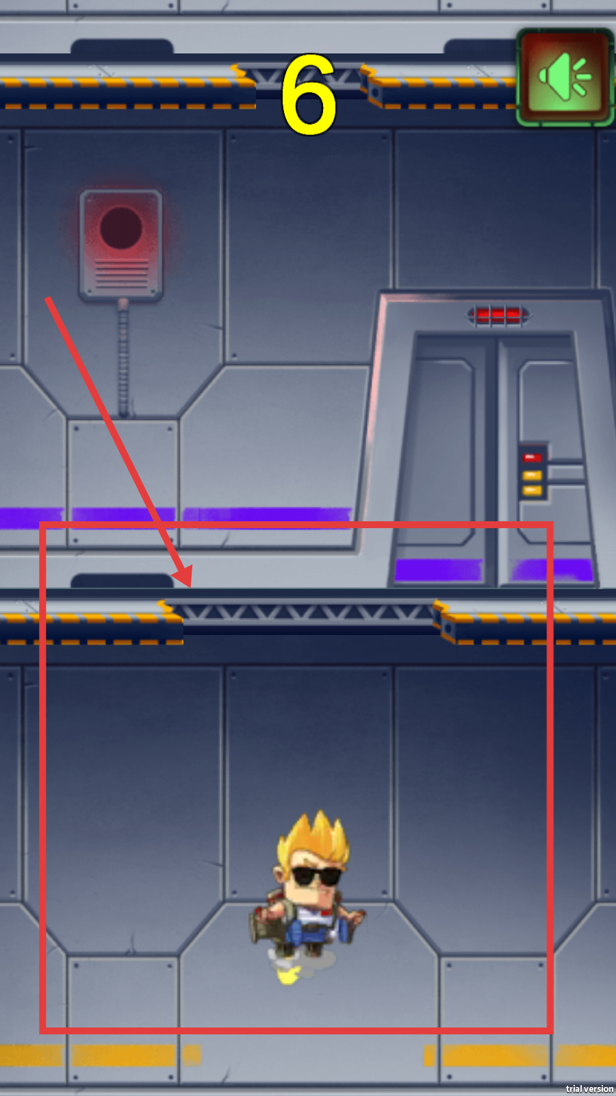 2、挑战至【6】层区域,看准平台缺口时机跳跃,稳定下落至下层,逐步推进楼层进度。