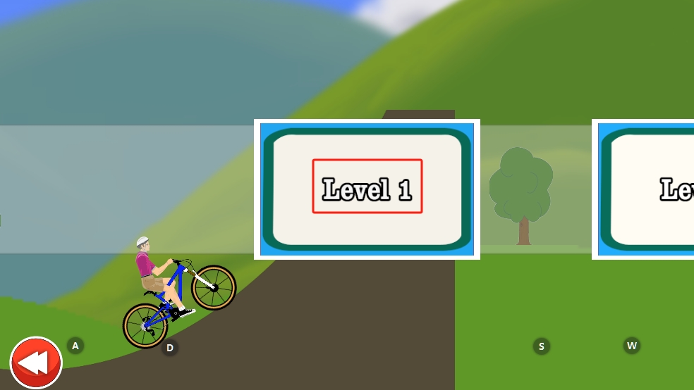 1、进入作品后,先了解一下操作,通过滑动屏幕控制独轮车平衡与方向,再点击关卡1,开启山丘骑行挑战。