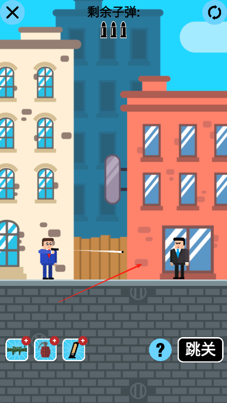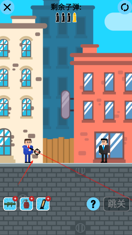 2、瞄准后松开手指射击,利用有限子弹消灭关卡内所有敌人。