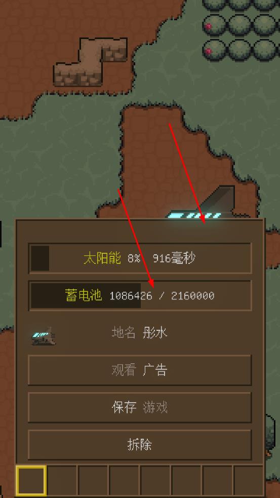 2、收集浆果道具栏统计,建造太阳能、蓄电池存储能量。