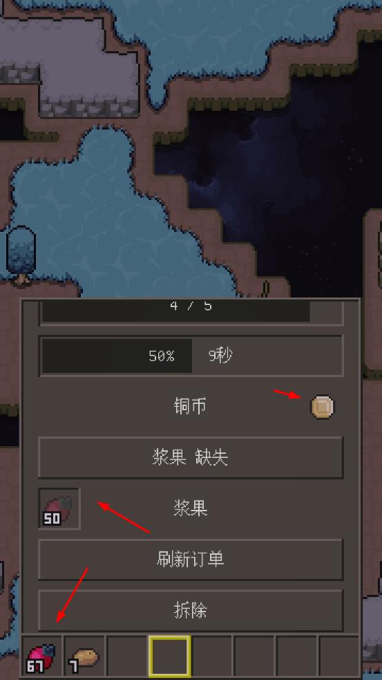 3、提交浆果等物资完成订单,获取铜币奖励。